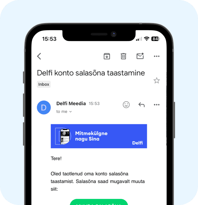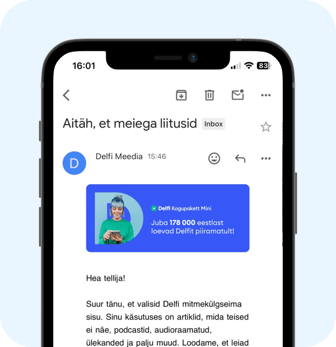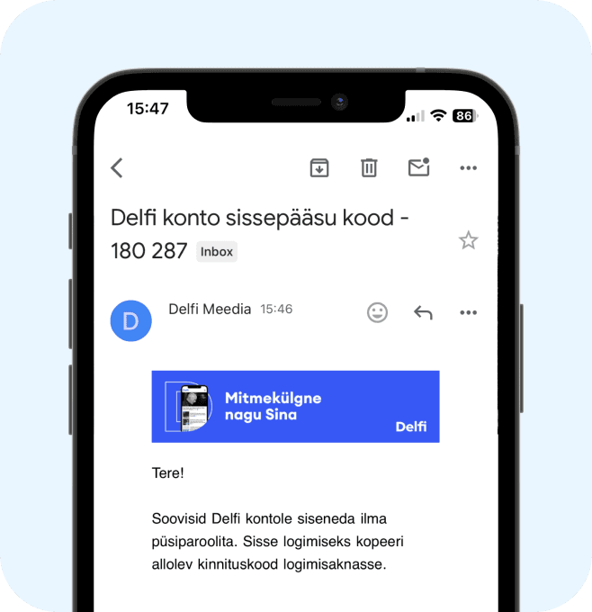 Leia õige konto nii, et mine oma e-maili programmi ning otsi kirju Delfi Meedialt. Pärast tellimuse tegemist või lugemisõiguse saamist saatis Delfi Meedia Sulle tervituskirja õigele e-maili kontole.