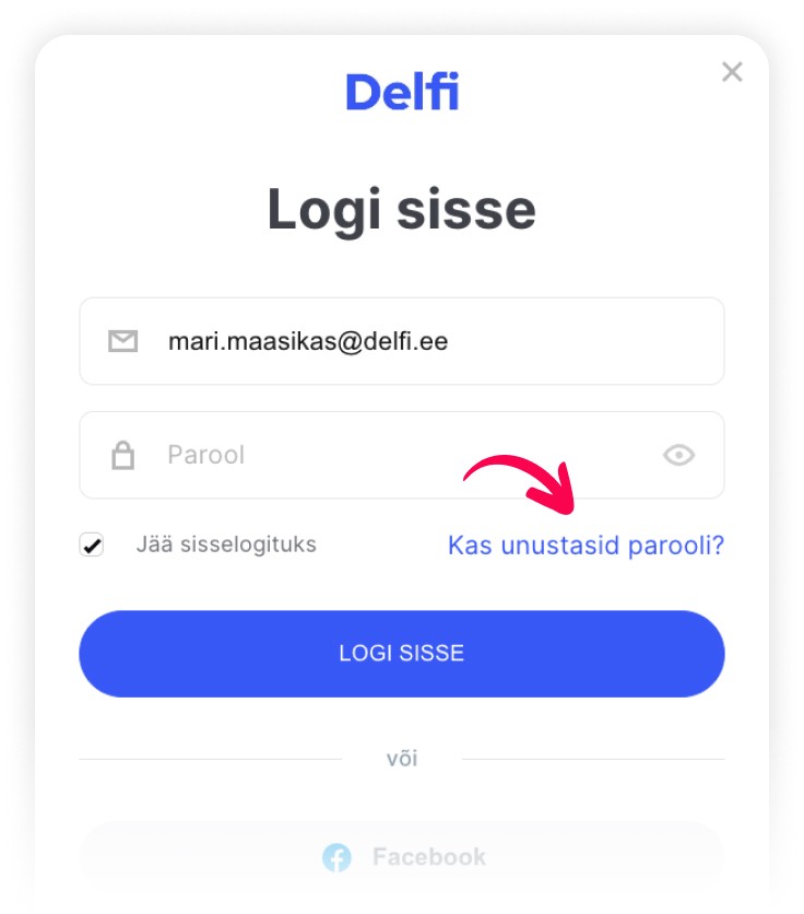 Kui siiski sisse logimine ei õnnestunud, siis vajuta nupule "Kas unustasid parooli?"